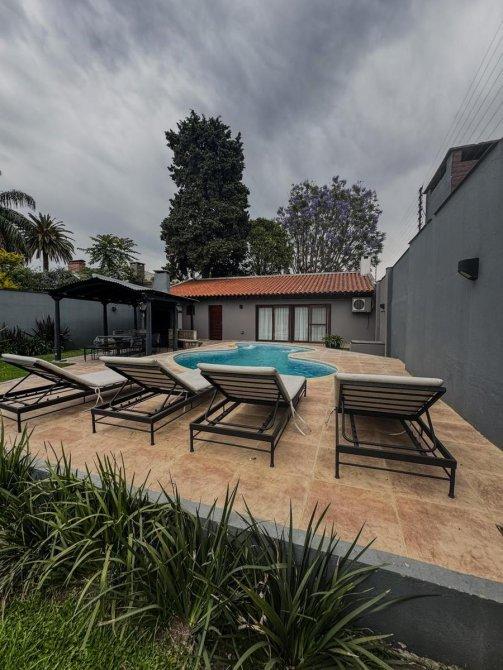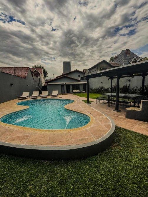 12 x 53 : consta de living amplio con toilette , playroom , escritorio con balcón en entrepiso , jard{in de invierno, cocina comedor con barra desayunadora , lavadero , dependencias con baño y cuarto , tres dormitorios (uno en suite), baño con hidromasaje y vestidor, parque con pergola revestida de chapa , parrilla incorporada , pileta , quincho con parrilla , baño y gimnasio , entrada de garage para cuatro autos .-Disponible a partir de enero ---